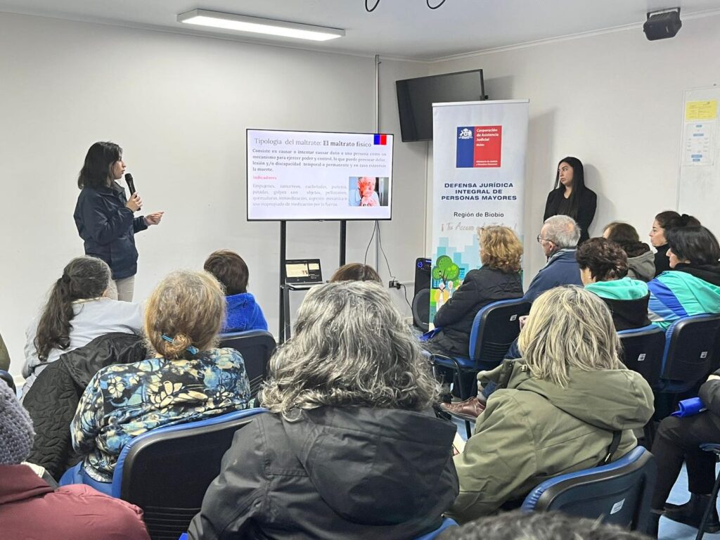 La jornada estuvo a cargo de la dupla socio jurídica de la Oficina de Defensa Integral de Personas Mayores de la Corporación de Asistencia Judicial, conformada por la trabajadora social Vilma Concha y la abogada Constanza Palma y quienes entregaron herramientas informativas y legales para prevenir situaciones de vulneración, orientar sobre rutas de apoyo y fomentar entornos seguros y respetuosos para este grupo de la población.