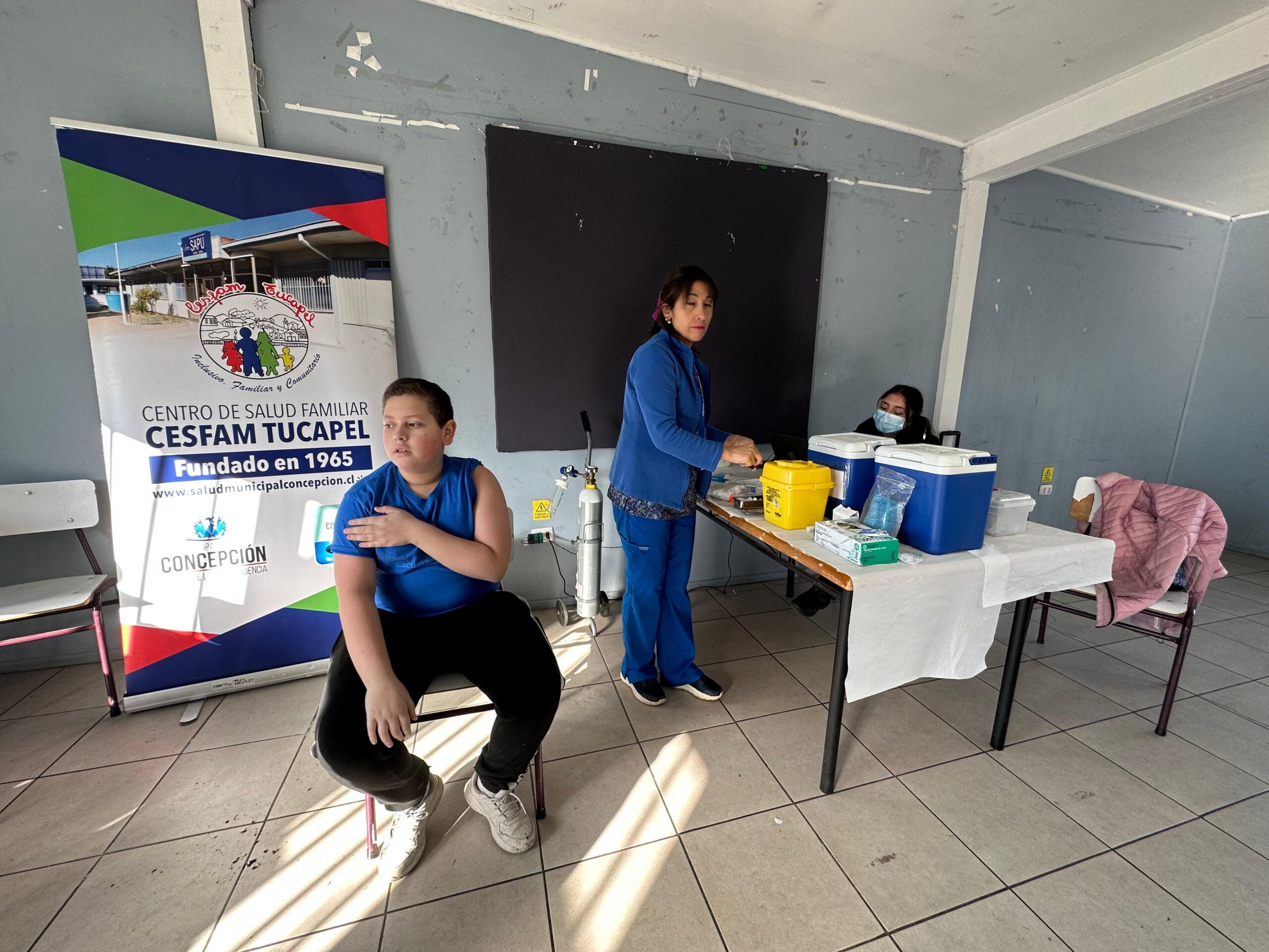 Funcionarias del Cesfam Tucapel estuvieron vacunando a vecinas y vecinos del sector Angol Bajo de Concepción en un operativo desarrollado la mañana de este jueves en la sede del lugar. La población se inoculó contra la Influenza y la Hepatitis A, esta última tomando en cuenta la inundación que afectó al sector durante el último sistema frontal.