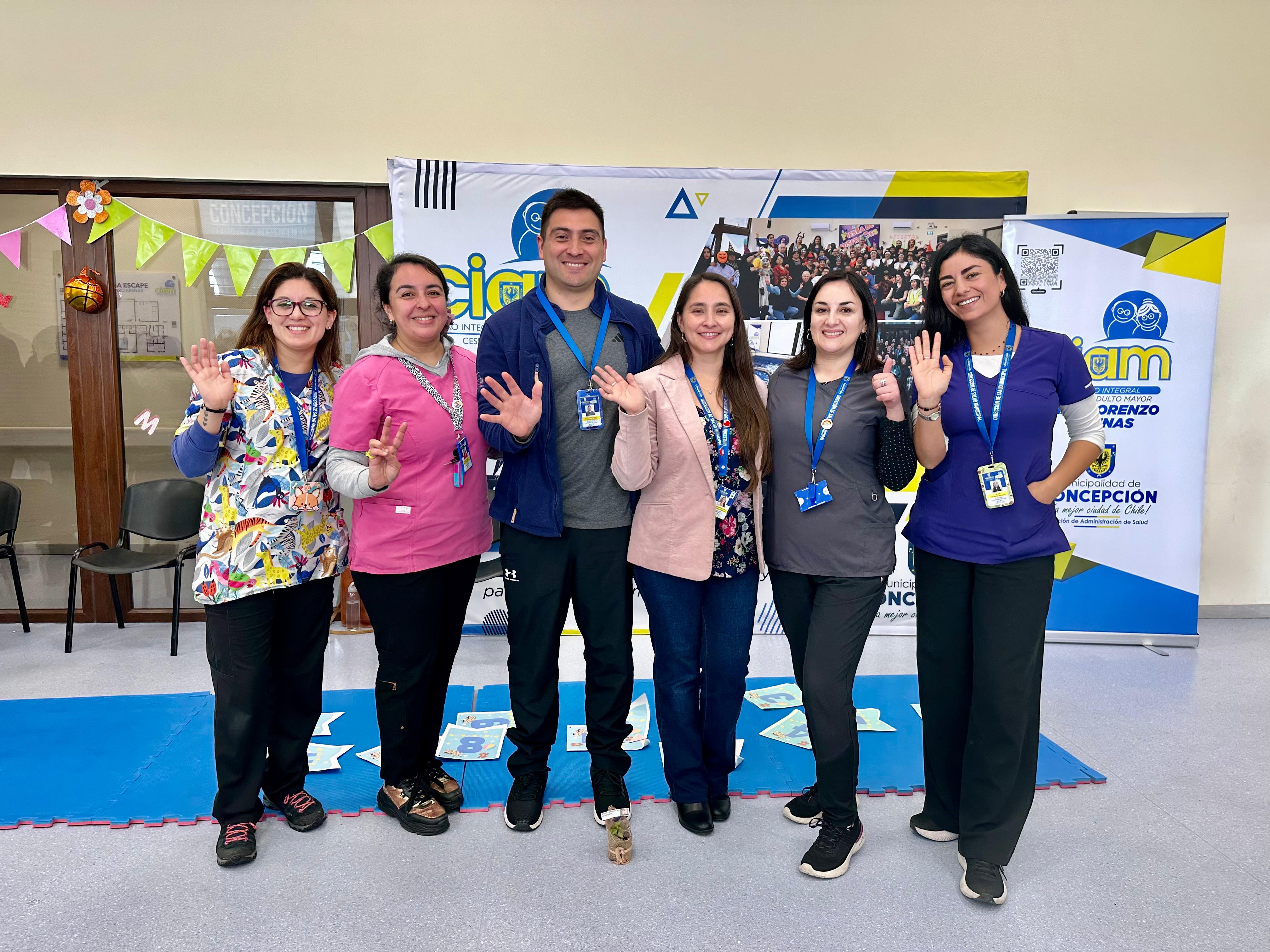 La actividad fue organizada por el CIAM y el programa Chile Crece Contigo del Cesfam Lorenzo Arenas. En esta participaron, además, Leila González, fonoaudióloga del CIAM, Macarena Cárcamo, fonoaudióloga de la sala de estimulación, y Constanza Pantoja, del CIAM Lorenzo Arenas. También compartió con los presentes Patricia Henríquez Sanhueza, directora interina del Cesfam Lorenzo Arenas.