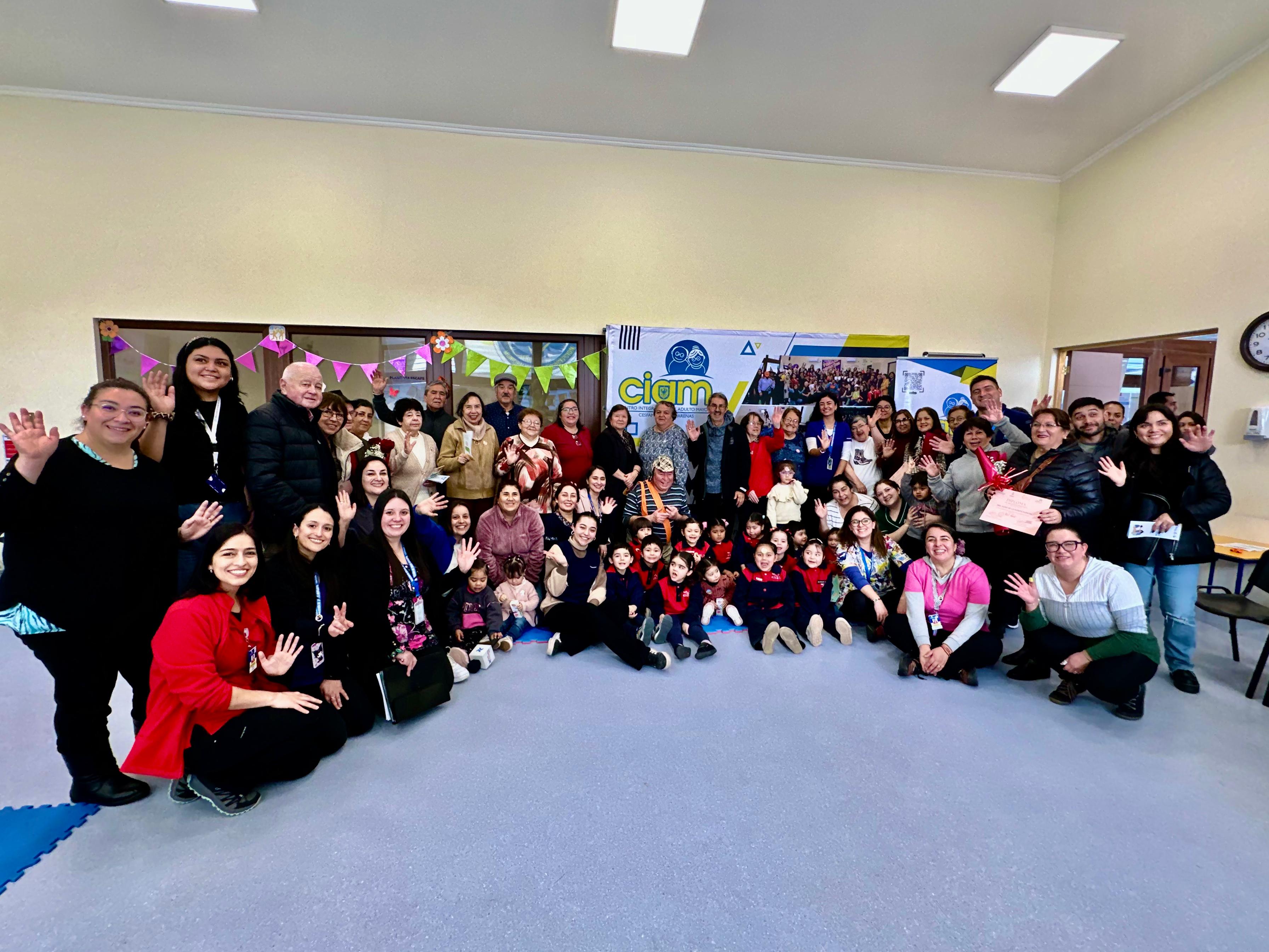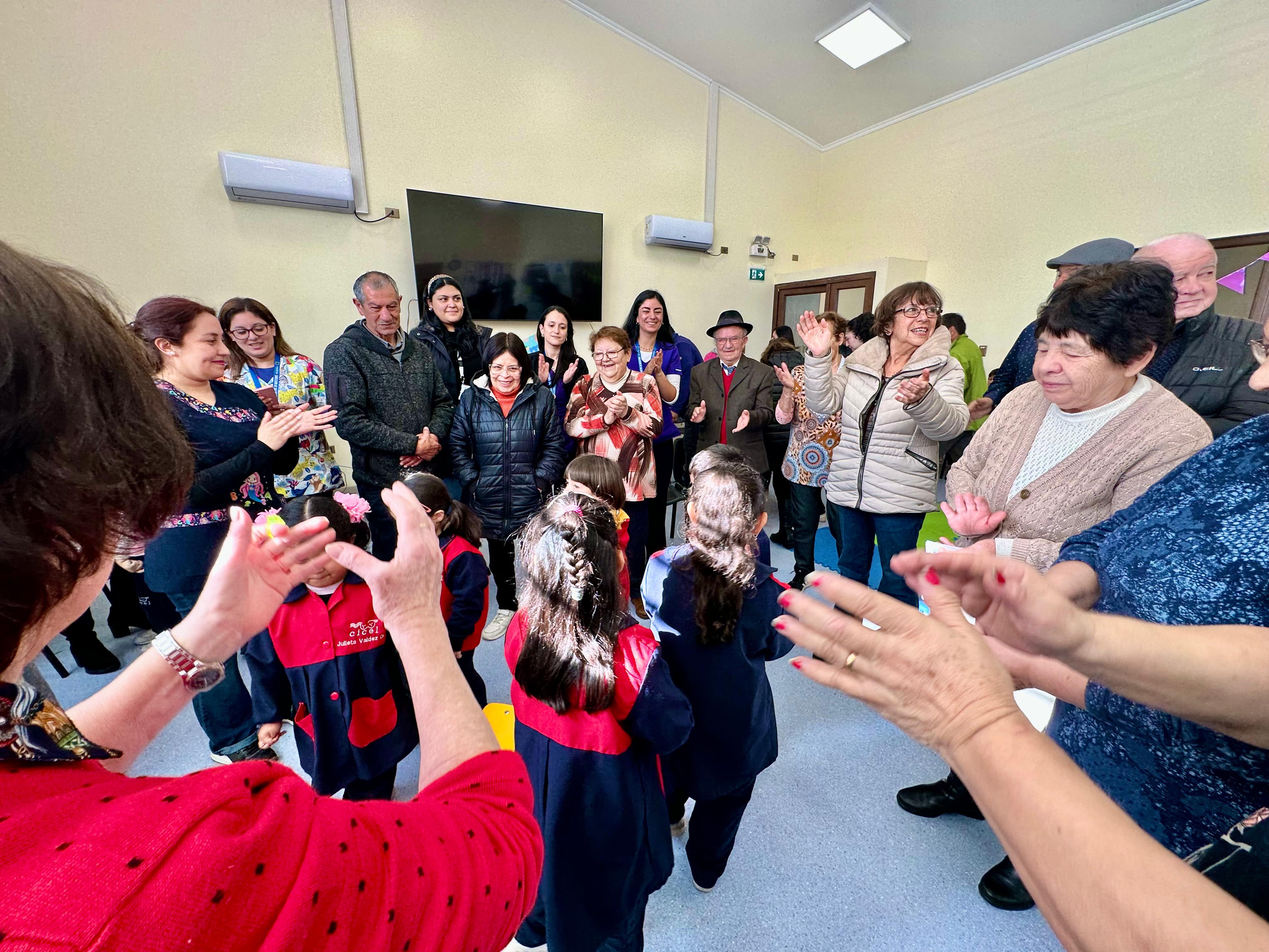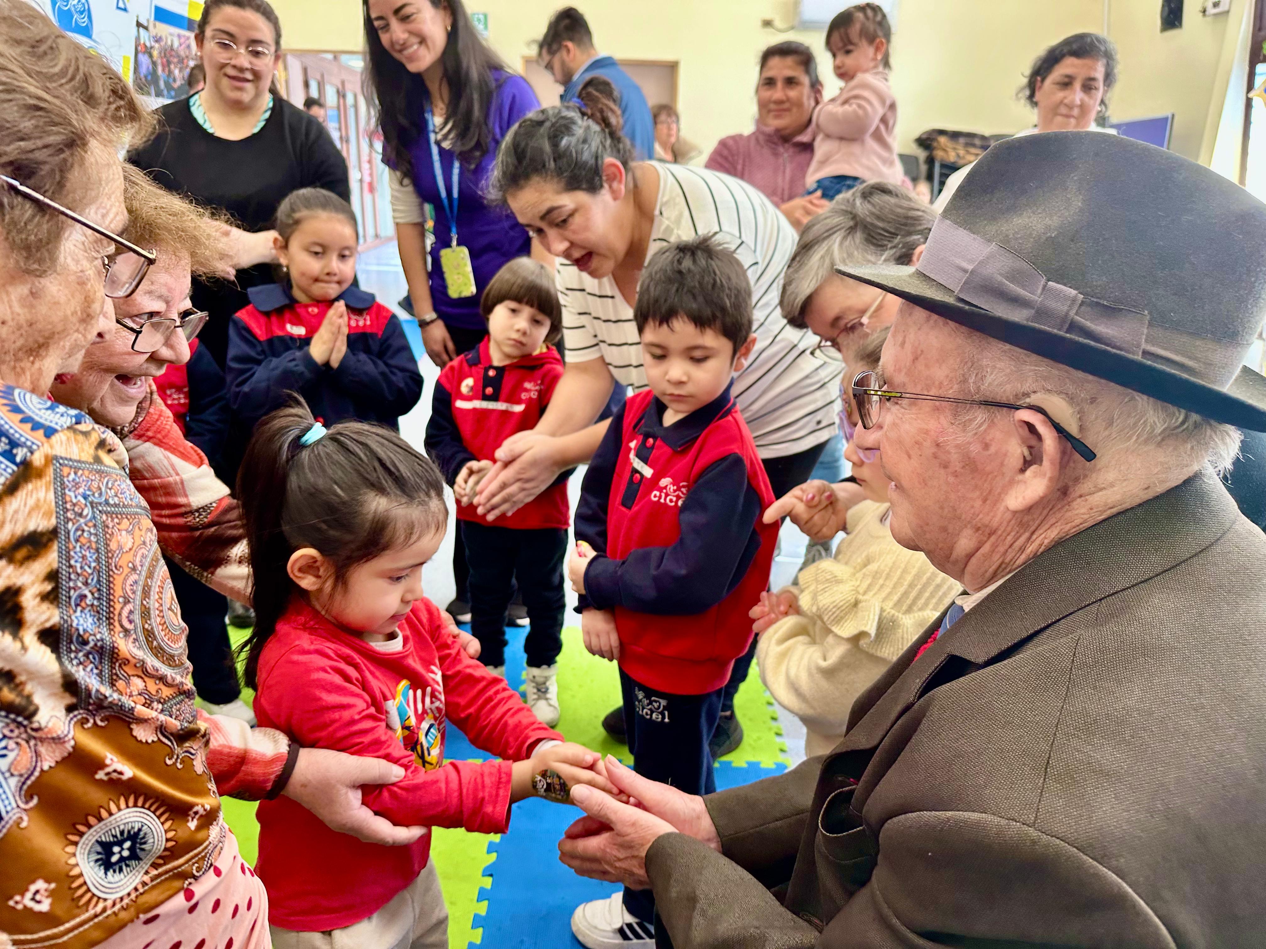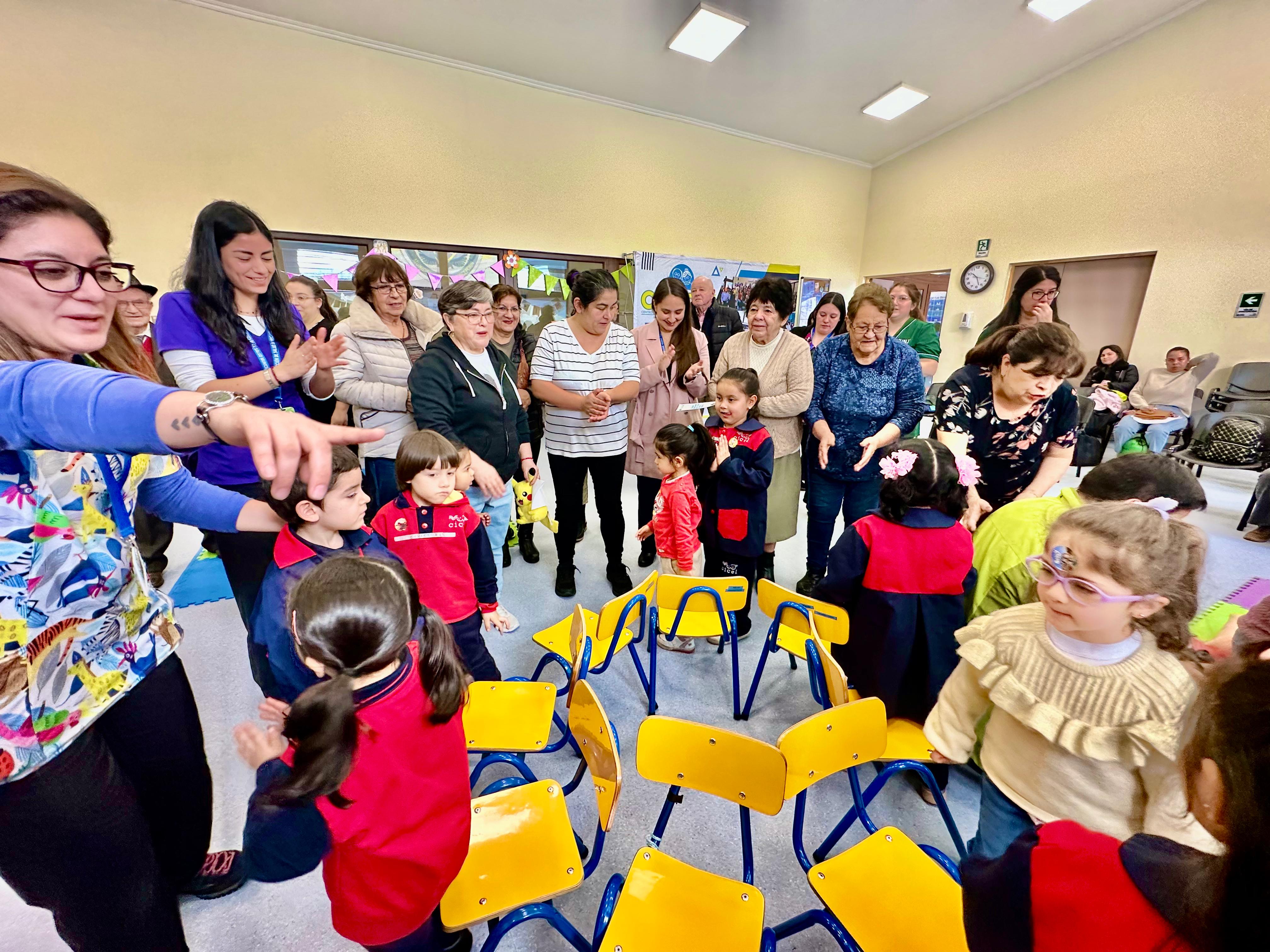 Una linda jornada para grandes y chicos. En el CIAM Lorenzo Arenas, se desarrolló la segunda versión del Encuentro Intergeneracional, una instancia que busca visibilizar la importancia del vínculo entre niñas, niños y personas mayores, en este caso usuarios del CIAM, desde una perspectiva basada en evidencia científica. En las personas mayores, estos encuentros fortalecen la memoria, promueven la actividad física, estimulan la motivación y reducen la sensación de soledad. En los niños, fomentan la empatía, el respeto y la valoración de la historia y la diversidad, así como el desarrollo de habilidades sociales y cognitivas.